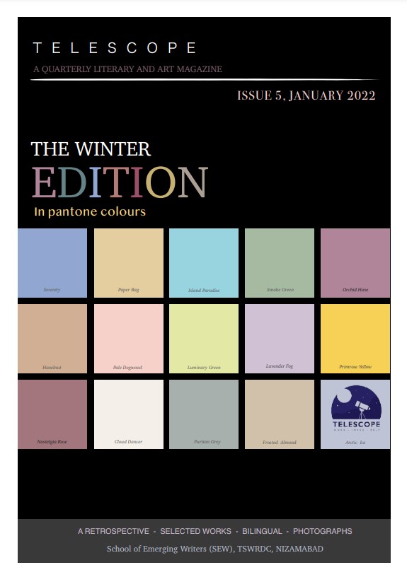 To exist, is to create. We wish our young souls to become creators of stories ―stories that talk that sing, that move; stories that show and wish to be seen. The Telescope Magazine is enthralled by the essential vision, which is to democratise creativity: to let the minds of our up-and-coming generation of story-tellers delve into every possible dimension of thought, to let their imagination unfold the ‘very own’ narratives and to let their expression be channeled around ways which leave a liberal room to manoeuvre in the process of self-discovery.